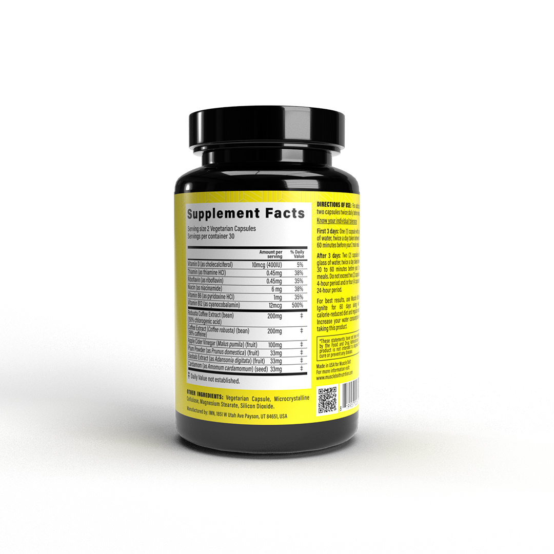 Muscle Bolt Lean Ignite supports thermogenesis, the process where the body produces heat. This thermogenic action increases fat burning because it stimulates metabolic rate and the production of heat causing the body to generate heat from stored fat.