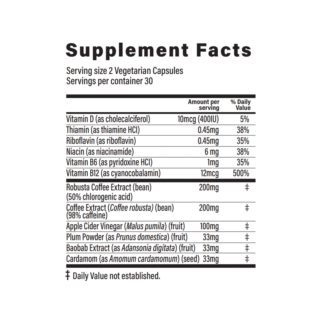 THIS PRODUCT IS ONLY INTENDED TO BE CONSUMED BY HEALTHY ADULTS, 18 YEARS OF AGE OR OLDER. Do not use this product if you are pregnant, nursing or are trying to get pregnant. Consult your physician before using if you are taking any medication or are under a physician’s care for a medical condition. This product should not be consumed by people with cardiovascular disorders, anxiety, or sleep disorders. Caffeine-sensitive individuals may experience symptoms including restlessness, nervousness, tremors, headaches, increased heart rate, palpitation and difficulty sleeping. Do not combine it with other sources of caffeine or stimulants.